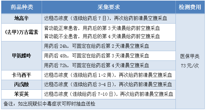 2.住院患者:医生开具检验申请单(在药学部申请单选项下勾选待检测项目)→护士采血(条码上标注药学部)→药学部将分时段收取样本。