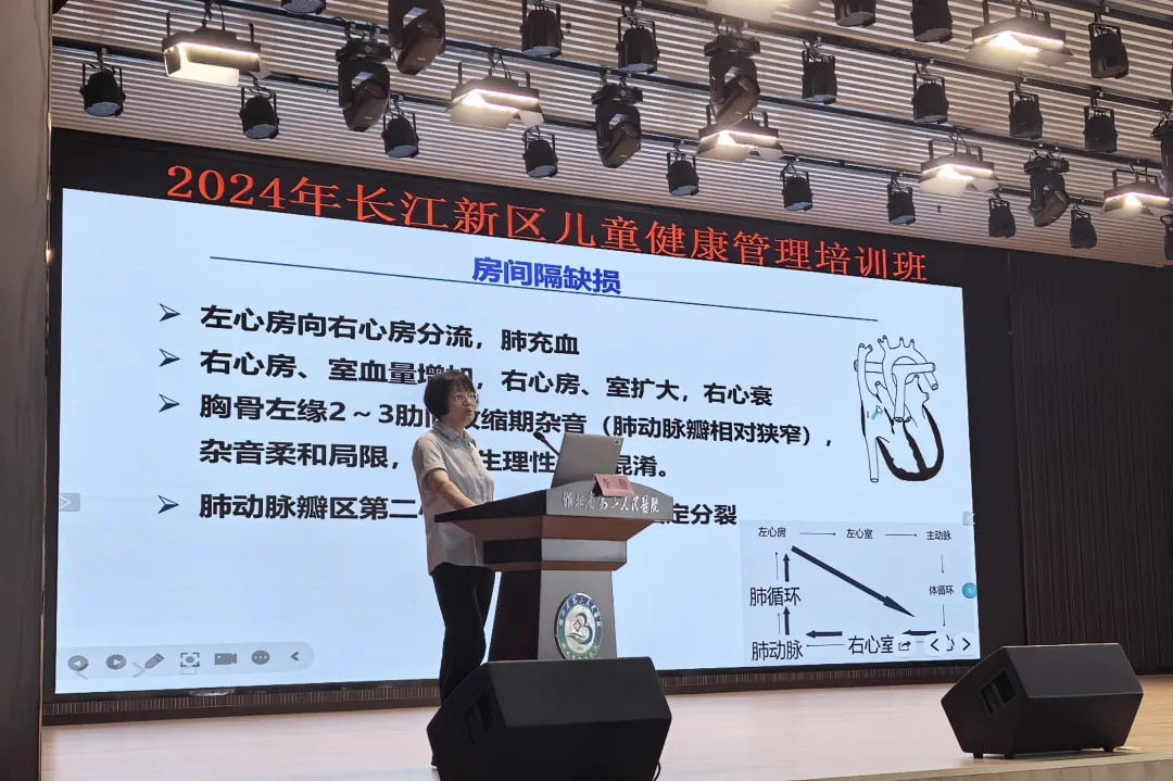 阳逻院区儿科主任李静以《新生儿先天性心脏病筛查》为题进行授课,深入讲解新生儿心脏的解剖结构、血流动力学以及正常、异常的心音节律和频率特点,详细阐述新生儿先天性心脏病中较为常见的几种类型,包括室间隔缺损、房间隔缺损和动脉导管未闭的成因、临床表现、诊断方法以及治疗策略。