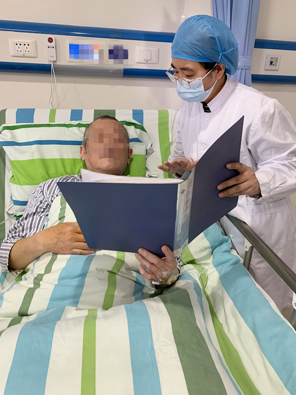 有次科内转来一名食管肿瘤患者,该患者年纪大、文化程度不高且性格较偏执,住院第一天开始就坚决要求输注抗生素,且多方劝阻后仍不见效,杨小进在了解情况后,反复耐心解释,为其讲解病情及相关治疗方案,经过不断的沟通,杨小进用真诚的态度获得了患者信任。在后期的治疗中,不管是手术、管道护理还是营养支持,老人都全身心的信赖杨小进,最后恢复良好,顺利出院。