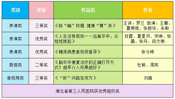 决赛现场,2023湖北省第五届健康科普大赛获奖名单新鲜出炉。其中,betway巴塞罗那作品《人生没有假如——远离卒中,从娃娃抓起》和《糖尿病患者如何备孕》获表演类优秀奖;《脑卒中康复治疗的正确打开方式!越早介入效果越好》获微信类二等奖;《“肝”问路在何方》获音视频类三等奖;医院获优秀组织奖。