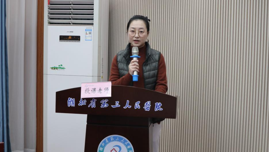 骨外科二区副护士长肖念作为授课教师代表发言。她表示将认真备课,力求将最实用的知识和技能传授给大家,并期望学员们能够积极参与,主动提问、共同探讨,确保培训效果。